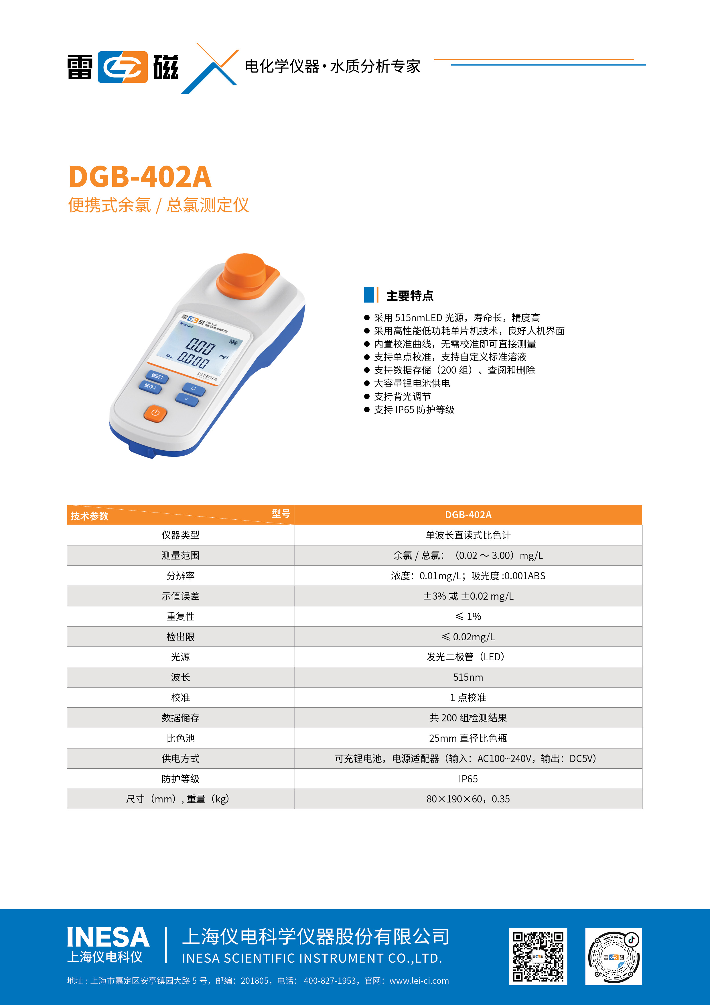 Диапазон измерений | Остаточный хлор /Всего хлора: 0,00 ~3.00мг/L |