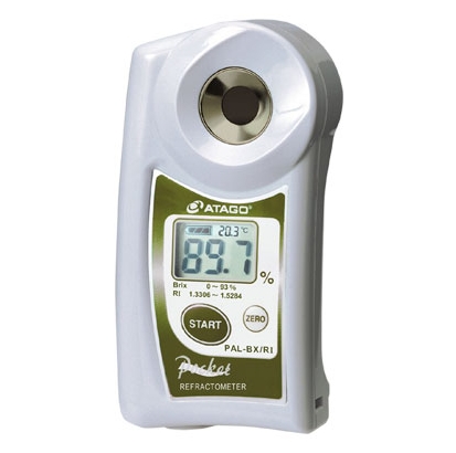 PAL-BX/Рит Измеримый Брикс (Диапазон измерений 0,0-93,0%, точность Брикс ±0.1%)и показатель преломления (Минимальная шкала 0,0001 )Двойные масштабные продукты. Шкала показателя преломления также может отображать температуру. PAL-BX/Рит Почти все образцы могут быть измерены.