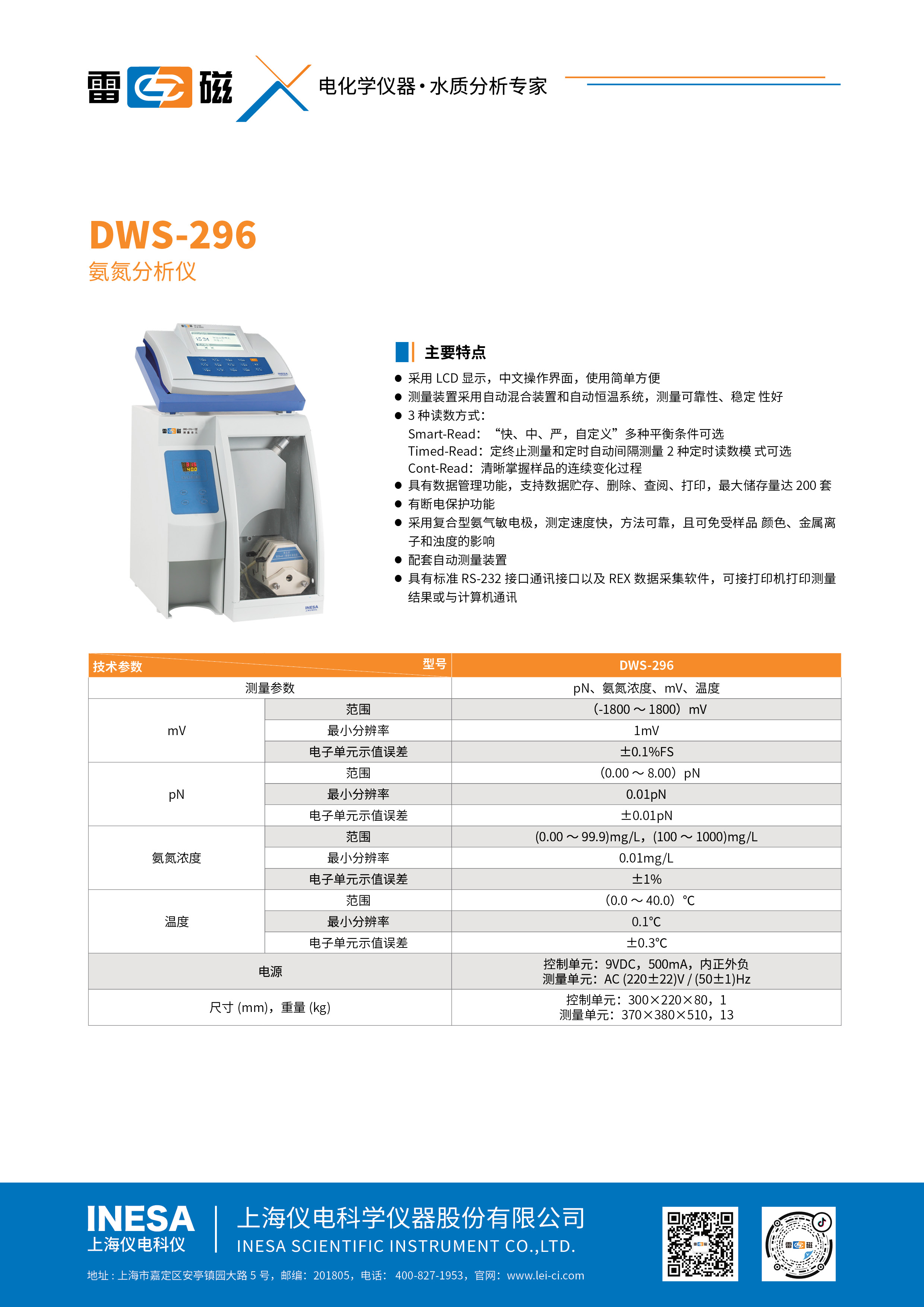 Параметры измерения | ПН ценность, концентрация азота аммиака, MV 、 Температурное значение | |